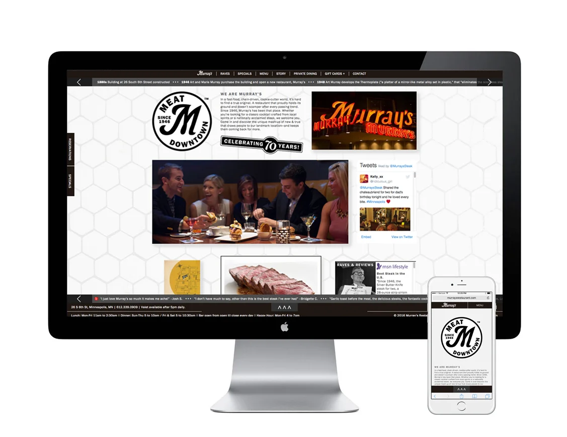 MURRAY'S STEAKHOUSE • "MEAT DOWNTOWN – SINCE 1946" BRAND POSITIONING • LOGO • COLLATERAL • WEBSITE • SOCIAL MEDIA MANAGEMENT